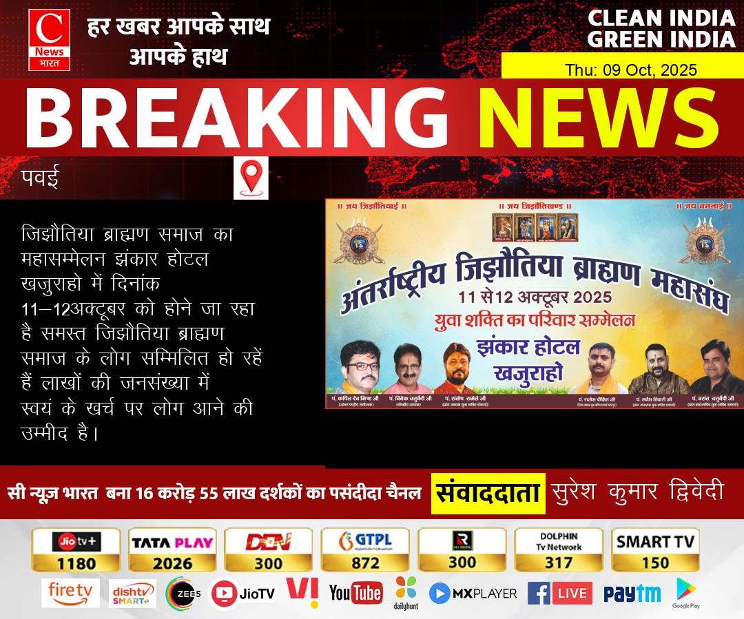 Breaking News by lqjs'k dqekj f}osnh 09 Oct 2025 0 BE THE FIRST TO COMMENT Related Articles view all No Data Found...
