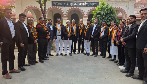 आगरा : जिला एवं सत्र न्यायालय आगरा में यमुना पर अधिवक्ता संघ की नवीन कार्यकारिणी का स्वागत किया गया, जिसमें संरक्षक देवी प्रसाद पांडे, जीसी फॉरेस्ट आगरा उदयवीर सिंह, ओपी अग्रवाल, अध्यक्ष नरेंद्र कुमार शर्मा एडवोकेट, महासचिव भारत सिंह एडवोकेट, वरिष्ठ उपाध्यक्ष कृष्ण मुरारी माहेश्वरी, उपाध्यक्ष जयंत कुमार,