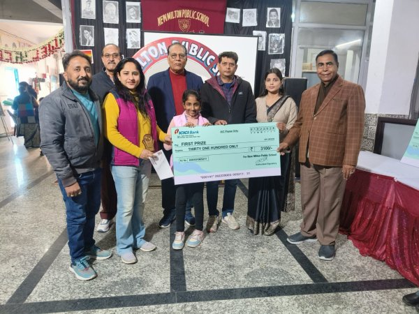 आगरा : गायत्री स्कूल की कक्षा 3 की छात्रा रियांशी सक्सेना को न्यू मिल्टन पब्लिक स्कूल अर्जुन नगर मे आयोजित कला प्रतियोगिता मे प्रथम पुरुस्कार मिला। क्लीन इंडिया के ऊपर उनके द्वारा बनाई गयी ड्राइंग को निर्णयको द्वारा सराहा गया। पुरुस्कार के रूप मे रियांशी सक्सेना को 3100 रूपये नगद और एक स्मृति चिन्ह प्राप्त हुआ, रियांशी हिमांशु सक्सेना दंपत्ति की होनहार बालिका है।