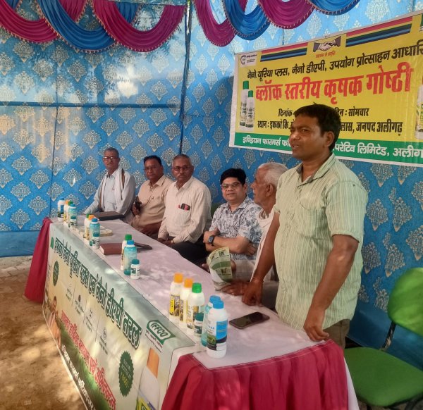 गोष्टी में वरिष्ठ क्षेत्र प्रबंधक इफको अलीगढ़ बी. के. निगम और एडीओ एग्रीकल्चर नेत्रपाल सिंह पूर्व एडीओ एग्रीकल्चर राम हरि शर्मा और इफको किसान सेवा केंद्र इगलास प्रभारी गोपाल सिंह सचिव रमाकांत रावत सचिव प्रमोद कटारा और लगभग 100 से 150 किसानों ने भाग लिया। वरिष्ठ क्षेत्र प्रबंधक इफको अलीगढ़ द्वारा इफको के जनपद अलीगढ़ किए जा रहे कार्यों को विस्तार से बताया। और किसानों को नैनो उर्वरकों की उपयोगिता के बारे में विस्तार से जानकारी दी। और किसानों द्वारा नैनो उर्वरकों के बारे में किए गए सवालों के बड़ी सुगमता से जवाब दिए। सेवा केंद्र प्रभारी गोपाल सिंह द्वारा नैनो उर्वरकों की प्रयोग विधि के बारे में विस्तार से बताया। और आने वाली रबी की फसलों में नैनो उर्वरकों की उपयोगिता के बारे में विस्तार से चर्चा की। और प्रगति शील किसान मुनेंद्र सिंह द्वारा अपनी काशीफल की फसल नैनो उर्वरकों का प्रयोग किया गया। जिससे हुए लाभ के बारे में अपने अनुभव को किसानों के बीच में विस्तार से बताया। और एडीओ एग्रीकल्चर नेत्र पाल सिंह द्वारा किसानों को धान की परली न जलाने की सलाह दी गरी। अन्त आए सभी आगंतुकों और सभी किसानों का गोपाल सिंह द्वारा धन्यवाद ज्ञापित किया गया। किसान गोष्ठी में एम डी ई वेद प्रकाश रावत, अमित भारद्वाज, किसान तेजवीर सिंह, प्रमोद कुमार, डोरीलाल, बल्लू सिंह, डालचंद, बंटी आदि सैकड़ो किसानों उपस्थित रहे।