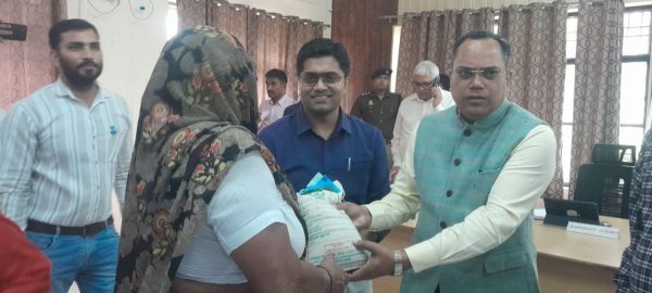 इगलास : इगलास सम्पूर्ण समाधान दिवस के मौके पर राज्य सरकार द्वारा किसानों के लिए निःशुल्क मिनी किट योजना के अंतर्गत टी ए सी जितेंद्र कुमार ने मुख्य विकास अधिकारी योगेंद्र कुमार के हाथों से किसानों को सरसों के बीज का वितरण कराया।