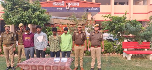 इगलास : जनपद अलीगढ की इगलास कोतवाली पुलिस टीम ने सोमवार को दोपहर करीब साढ़े तीन बजे मुखबिर खास की सूचना पर डबल नहर के पास मैन रोड़ से चार अभियुक्तों को 60 बोरी धान की भरी हुई एक अदद टाटा पिकअप के साथ गिरफ्तार किया है। पकड़े गए अभियुक्तों का संबंधित धाराओं में चालान कर माननीय न्यायालय भेज दिया है। प्राप्त जानकारी के मुताबिक वरिष्ठ पुलिस अधीक्षक अलीगढ द्वारा अपराध एवं आपराधियों की रोकथाम व तलाश वांछित अपराधियों के विरूध चलाये जा रहे अभियान के तहत पुलिस अधीक्षक ग्रामीण के द्वारा किये गये पर्यवेक्षण व निकट निर्देशन में गठित की गयी टीमो एवं क्षेत्राधिकारी इगलास के पर्यवेक्षण व कुशल नेतृत्व मे ऑपरेशन प्रहार के क्रम में इगलास पुलिस टीम द्वारा सोमवार को दोपहर करीब साढ़े तीन बजे डबल नहर के पास मैन रोड़ से धान चोरी करने वाले चार अभियुक्तों को चोरी गयी 60 बोरी धान की भरी हुई एक अदद टाटा पिकअप संख्या यूपी 81 सीटी 5722 के साथ गिरफ्तार कर थाने लाया गया जहां उनसे पूछताछ की गई तो उन्होंने अपने नाम सुन्दर पुत्र निरंजन लाल उर्फ जंगलिया निवासी ग्राम तहारपुर थाना इगलास अलीगढ़ उम्र करीब 45 बर्ष, सोनवीर पुत्र नत्थी सिंह निवासी भौरा गौरवा थाना इगलास अलीगढ़ उम्र करीब 32 बर्ष, आकाश उर्फ अमित पुत्र सुन्दर निवासी ताहरपुर थाना इगलास अलीगढ उम्र करीब 21 बर्ष, शिवा उर्फ सोमदत्त पुत्र ओमदत्त निवासी तहारपुर थाना इगलास अलीगढ़ उम्र करीब 20 वर्ष बताया है। पकड़े गए अभियुक्तों का चालान कर माननीय न्यायालय भेज दिया है। गिरफ्तार करने वाली पुलिस टीम में निरीक्षक नरेन्द्र यादव, उ0नि0 गंगाराम गंगवार, उ0नि0 राजकुमार धाकड, उ0नि0 अर्जुन सिह, उ0नि0 विकास कुमार, है0का0 नीरज कुमार, है0का0 प्रदीप कुमार, का0 अनुज कुमार, का0 रविन्द्र कुमार आदि थे।