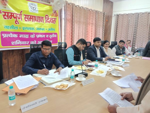 अलीगढ - इगलास तहसील मुख्यालय सभागार में अपर जिलाधिकारी फाइनेंस प्रमोद कुमार की अध्यक्षता में आयोजित सम्पूर्ण समाधान दिवस में 21 फरियादियों द्वारा अपनी शिकायतें प्रस्तुत की गई। जिसमें से मौके पर 3 शिकायतों का निस्तारण कर शेष शिकायतें संबंधित अधिकारियों को सौंप दी गई हैं। अधीनस्थ अधिकारियों को एक सप्ताह के अंदर शिकायतों का निस्तारण किए जाने को कहा गया है।