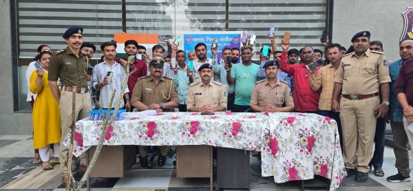 आणंद - "तेरा तुजको अर्पण" अभियान विद्या नगर पुलिस ने 12 लाख रुपये से अधिक कीमत के 61 खोए हुए फोन उनके असली मालिकों को लौटाए। विद्या नगर पुलिस ने "तेरा तुजको अर्पण" अभियान के तहत 12,49,877 रुपये कीमत के 61 खोए हुए फोन उनके असली मालिकों को लौटाए आनंद जिला पुलिस अधीक्षक जसानी और पुलिस उप अधीक्षक जे.एन. पांचाल, आनंद संभाग नाउ ने "तेरा तुजको अर्पण" अभियान के तहत खोए/लापता मोबाइलों को खोजने के निर्देश दिए थे, जिसके आधार पर श्री डी.आर. गोहिल पुलिस निरीक्षक विद्यानगर पुलिस स्टेशन नाउ के मार्गदर्शन के अनुसार एचसी हेमंतकुमार प्रभाभाई और विद्यानगर पुलिस ने सीईआईआर पोर्टल और तकनीकी स्रोतों के माध्यम से गुजरात, उत्तर प्रदेश, बिहार, राजस्थान आदि राज्यों से विद्यानगर पुलिस स्टेशन क्षेत्र से 12,49,877 रुपये कीमत के 61 मोबाइल फोन बरामद किए।