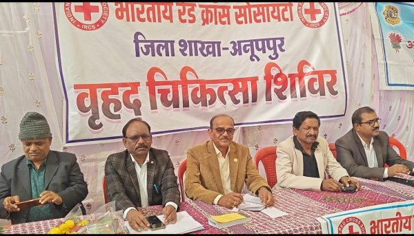 अनूपपुर - रेडक्रॉस सोसाइटी शाखा अनूपपुर द्वारा युवा दिवस सप्ताह के अवसर पर जिला मुख्यालय अनूपपुर से 12 किलोमीटर दूर स्थित ग्राम पंचायत लखनपुर के बैगा जनजाति बाहुल्य ग्राम पचड़ीपानी में हर्षल पंचोली कलेक्टर एवं अध्यक्ष के मार्गदर्शन में स्वास्थ्य शिविर आयोजित किया गया जिसमें सिकल सेल एनीमिया कुपोषित बच्चों की जांच ट्यूबरक्लोसिस मलेरिया आंखों की जांच ब्लड प्रेशर सीजनल बीमारियां एवं शुगर की जांच की गई स्कूली बच्चों का भी स्वास्थ्य परीक्षण किया गया एवं स्वास्थ्य संबंधी जानकारी दी गई l