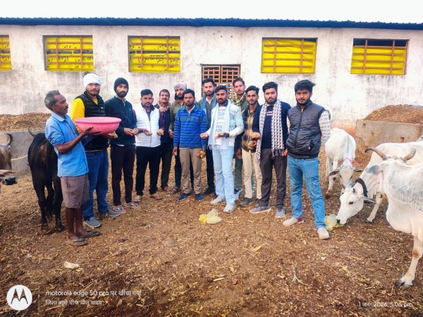 अशोकनगर : सर्दियों की कड़कड़ाती ठंड को देखते हुए श्री श्याम गौ सेवा समिति के सदस्यों ने पशुओं की देखभाल और उनके स्वास्थ्य के प्रति अपनी जिम्मेदारी निभाने का अनूठा उदाहरण पेश किया है। समिति के सदस्यों ने नई अंदाज मै नई साल मनाई और गुरुवार को स्थानीय तामोईया गौशाला में मौजूद गायों को लड्डू खिलाकर उनकी सेहत का ख्याल रखा। गौ सेवा समिति के समिति प्रबंधक गोलू यादव ने बताया कि सोनू जैन भैया द्वारा युक्त गुड़ के लड्डू दिए जो की ठंड के मौसम में गायों को अतिरिक्त पोषण की जरूरत होती है। इसी उद्देश्य से विशेष रूप से गुड़ और औषधि से मिलकर बने लड्डुओं का प्रबंध किया गया। ये लड्डू न केवल ऊर्जा का स्रोत हैं, बल्कि ठंड से बचाव में भी सहायक होते हैं। उन्होंने लोगों से अपील की कि वे भी ठंड के मौसम में आवारा पशुओं की मदद करें। इस प्रयास से न केवल गायों को राहत मिली, बल्कि समाज में पशु प्रेम और जिम्मेदारी का संदेश भी गया इस मोके पर उपस्थित रहे