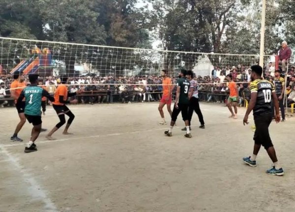 अयोध्या : मिल्कीपुर विधानसभा क्षेत्र के दरबारी लाल जन सहयोगी पीजी कॉलेज, कलुआमऊ के खेल मैदान में एक दिवसीय जनपद स्तरीय वॉलीबॉल प्रतियोगिता का आयोजन किया गया। इस प्रतियोगिता में श्रीगणेश सिंह महाविद्यालय अहरन ने संत भीखादास महाविद्यालय मोहाली को हराकर खिताब अपने नाम किया। प्रतियोगिता में जिले की आठ टीमों ने भाग लिया। इनमें कीन्हपुर, कुमारगंज ए, कुचेरा, कुमारगंज बी, आजाद हिंद स्पोर्ट्स क्लब, संत भीखादास महाविद्यालय मोहाली, श्रीगणेश सिंह महाविद्यालय अहरन सुबंश और बाबा बैजनाथ महाविद्यालय की टीमें शामिल थीं। प्रतियोगिता का उद्घाटन मुकाबला कीन्हपुर और कुमारगंज ए के बीच खेला गया, जिसमें कीन्हपुर विजयी रही। लीग मुकाबलों के आधार पर चार टीमों ने सेमीफाइनल में जगह बनाई। पहला सेमीफाइनल कुचेरा और श्रीगणेश सिंह महाविद्यालय अहरन के बीच हुआ, जिसमें श्रीगणेश सिंह महाविद्यालय ने जीत दर्ज की। दूसरे सेमीफाइनल में बाबा बैजनाथ महाविद्यालय को हराकर संत भीखादास महाविद्यालय मोहाली फाइनल में पहुंचा। फाइनल मुकाबला 25 अंकों के तीन सेटों में खेला गया, जिसमें दोनों टीमों के बीच कड़ा संघर्ष देखने को मिला। रोमांचक मुकाबले में श्रीगणेश सिंह महाविद्यालय अहरन की टीम ने संत भीखादास महाविद्यालय मोहाली को 2-1 के अंतर से पराजित कर ट्रॉफी पर कब्जा जमाया। संत भीखादास महाविद्यालय के करन सिंह को उनके उत्कृष्ट प्रदर्शन के लिए 'प्लेयर ऑफ द टूर्नामेंट' चुना गया। प्रतियोगिता के दौरान प्रबंधक कृष्ण कुमार लाल श्रीवास्तव, देव बख्श सिंह, कमलेश यादव, सर्वेश तिवारी, विनोद पांडेय,अजीत सिंह, अनिल सिंह, प्रदीन श्रीवास्तव, चंद्रमौलि श्रीवास्तव और दुर्गा बख्श सिंह उर्फ कप्तान सिंह ने खिलाड़ियों का उत्साहवर्धन किया। पुरस्कार वितरण कार्यक्रम में पूर्व ब्लॉक प्रमुख कमलेश यादव ने विजेता और उपविजेता टीमों को ट्रॉफी और मेडल प्रदान किए। कार्यक्रम देर शाम तक चला।