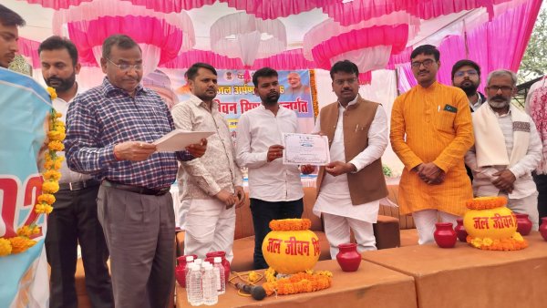अयोध्या - जल जीवन मिशन योजना अंतर्गत ग्राम पंचायत मिल्कीपुर में नव निर्मित पानी टंकी का लोकार्पण समारोह आयोजित किया गया। जल अर्पण दिवस समारोह के मुख्य अतिथि मिल्कीपुर भाजपा विधायक चंद्रभानु पासवान रहे। उन्होंने पंप हाउस में लगे स्टार्टर का स्विच ऑन कर गांव में जल आपूर्ति शुरू की। बताते चलें कि मिल्कीपुर ब्लाक क्षेत्र अंतर्गत ग्राम पंचायत मिल्कीपुर के चांदपुर में जल जीवन मिशन योजना के तहत 3 करोड़ 58 लाख रुपए की लागत से पानी टंकी का निर्माण विभाग द्वारा कराया गया है। जिसके तहत गांव के 2629 परिवार लाभान्वित होंगे। गांव में कुल 658 परिवारों को जल आपूर्ति हेतु कनेक्शन दिए जाने का लक्ष्य है, जिसके सापेक्ष 570 कनेक्शन अभी तक किए जा चुके हैं। जल अर्पण दिवस समारोह में पहुंचे अतिथियों को माल्यार्पण एवं अंग वस्त्र देकर विभागीय अधिकारियों द्वारा सम्मानित भी किया गया। जल अर्पण दिवस समारोह को संबोधित करते हुए विधायक चंद्रभानु पासवान ने कहा कि जिस तरीके से पृथ्वी पर जल का स्तर घट रहा है वह आने वाले कल के लिए बेहद कष्टदाई होगा। उन्होंने घटते जल स्तर पर चिंता जताई और जल संरक्षित किए जाने पर बल दिया। विधायक श्री पासवान ने मौजूद ग्रामीणों को संबोधित करते हुए कहा कि मोदी योगी ने जो सपना देखा है कि आगामी वर्ष 2047 तक भारत विकसित राष्ट्र बनेगा, वह निश्चित ही साकार होगा। उन्होंने कहा कि जल है तो कल है, जल के बिना जीवन असंभव है। उन्होंने ग्रामीणों से आग्रह पूर्वक कहा कि आप सब की जिम्मेदारी है कि पानी की बर्बादी हर हाल में बचाया जाए, तभी भविष्य सुरक्षित रह सकेगा। उन्होंने जल अर्पण कार्यक्रम को लेकर मौजूद ग्रामीणों को बधाई दी। कार्यक्रम में मौजूद जल निगम विभाग के अधिशासी अभियंता अरविंद यादव ने मौजूद ग्रामीणों को पूरी कार्य योजना के बारे में विस्तार से जानकारी दी और कहा कि उक्त संयंत्र से ग्रामीणों को 24 घंटे जलापूर्ति की जाएगी।कार्यक्रम को संबोधित करते हुए ग्राम प्रधान मिल्कीपुर अनुराग सिंह ने मौजूद विधायक सहित जल निगम विभाग के अधिकारियों एवं ग्रामीणों को बधाई देते हुए धन्यवाद व्यापित किया। कार्यक्रम को संबोधित करते हुए भाजपा मंडल अध्यक्ष श्याम नारायण पाठक ने मौजूद विभागीय अधिकारियों से ग्रामीणों हितार्थ किए गए कार्यों की बिंदवार समीक्षा भी की। उन्होंने ग्रामीणों को बधाई दी। कार्यक्रम के दौरान मिल्कीपुर विधायक ने ग्राम प्रधान अनुराग सिंह, अवर अभियंता साहब लाल बिंद, सहायक अभियंता सुनीता देवी, इंजीनियर सच्चिदानंद, मोहम्मद अशरफ तथा ऑपरेटर बब्बन को प्रशस्ति पत्र देकर सम्मानित भी किया। कार्यक्रम के अंत में विधायक श्री पासवान द्वारा पंप हाउस परिसर सहित आसपास आम्रपाली आम के पौधे भी किए गए। क