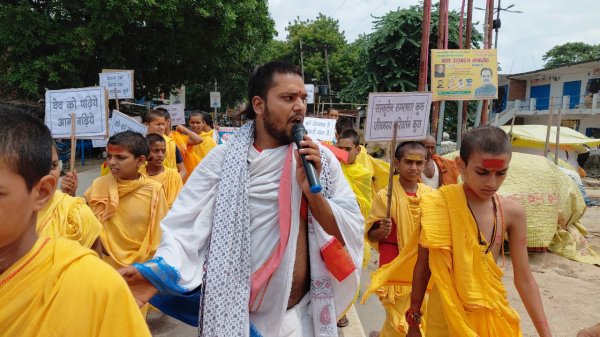 बलिया - महर्षि भृगु वैदिक गुरुकुलम, हुकुम छपरा (गंगापुर) के बटुकों द्वारा आज भव्य शोभा यात्रा निकाली गई। वैदिक परंपराओं के संवर्धन और सनातन संस्कृति के प्रचार-प्रसार के उद्देश्य से आयोजित इस शोभा यात्रा में बटुक, आचार्यगण और स्थानीय श्रद्धालु सम्मिलित हुए। शोभा यात्रा की शुरुआत गुरुकुल परिसर से वैदिक मंत्रोच्चार और वैदिक ध्वज पूजन के साथ की गई। छात्र पारंपरिक वेशभूषा—धोती, उपवीत, तिलक—में सुसज्जित होकर वेद-मंत्रों का उच्चारण करते हुए नगर के प्रमुख मार्गों से गुज़रे। गुरुकुल के आचार्य संस्थापक श्री मोहित पाठक जी ने बताया कि इस शोभा यात्रा का उद्देश्य युवा पीढ़ी को वैदिक शिक्षा, संस्कृति एवं संस्कारों से जोड़ना है, ताकि आने वाली पीढ़ियाँ भी भारतीय परंपरा और मूल्यों को संजोए रखें। उन्होंने कहा कि इस प्रकार के आयोजन समाज में आध्यात्मिक चेतना और सांस्कृतिक एकता का संदेश देते हैं कार्यक्रम का समापन गुरुकुलम प्रांगण में प्रसाद वितरण के साथ हुआ। स्थानीय जनों ने इस पहल की सराहना करते हुए कहा कि ऐसे आयोजन से क्षेत्र में धर्म, संस्कृति और शिक्षा का समन्वय स्थापित होता है। इस अवसर पर वेदाध्यापक श्री शौनक द्विवेदी संस्कृत संभाषण शिविर चला रहे प्रशिक्षक श्री रणविजय प्रताप तिवारी जी उपस्थित रहे।