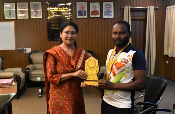 बालोद : जिले के ग्राम पेरपार के दिव्यांग खिलाड़ी श्री देवराम पटेल ने राज्य स्तरीय पैरा ओलंपिक एथेलेटिक्स में आयोजित तीन खेलों में अपनी प्रतिभा का प्रदर्शन कर प्रथम स्थान हासिल किया है। संयुक्त जिला कार्यालय में आज कलेक्टर श्रीमती दिव्या उमेश मिश्रा ने दिव्यांग खिलाड़ी श्री देवराम पटेल की उपलब्धि पर प्रसन्नता व्यक्त करते हुए उन्हें हार्दिक बधाई एवं शुभकामनाएं दी तथा आगामी दिनों में होेने वाले खेलों में उत्कृष्ट प्रदर्शन करने शुभकामनाएं दी।