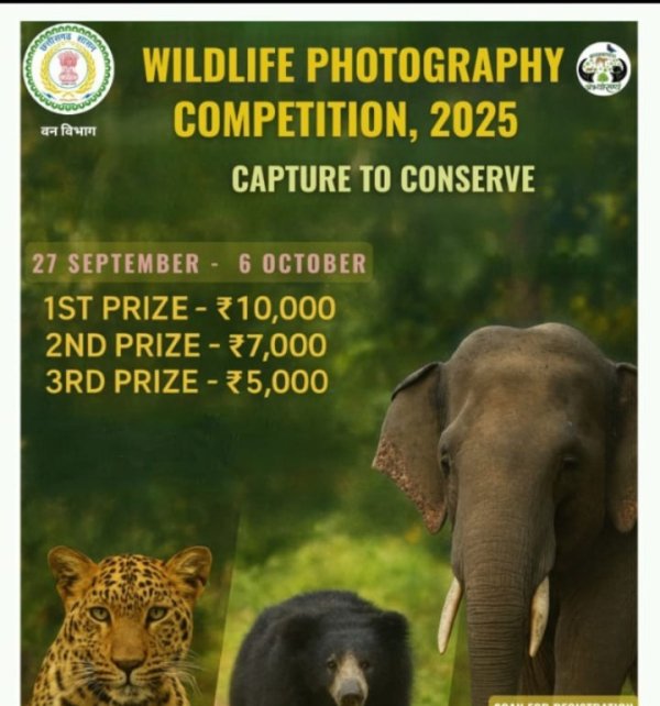 बलौदाबाज़ार - भाटापारा 29 सितंबर 2025 /वाइल्डलाइफ वीक 02 अक्टूबर - 08 अक्टूबर, 2025 के अवसर पर, बारनवापारा वन्यजीव अभयारण्य में "कैप्चर टू कंजर्व" विषय पर वाइल्डलाइफ फोटोग्राफी प्रतियोगिता का आयोजन किया जा रहा है। वन मंडलाधिकारी श्री गणवीर धम्मशील ने बताया कि इस प्रतियोगिता का उद्देश्य वन्यजीवों के संरक्षण के प्रति जागरूकता बढ़ाना है।प्रतियोगिता की अंतिम तिथि 6 अक्टूबर है।प्रतियोगिता में विजेताओं को नकद पुरस्कार दिए प्रथम पुरस्कार ₹10,000, द्वितीय पुरस्कार: ₹7,000 और तृतीय पुरस्कार: ₹5,000 है।