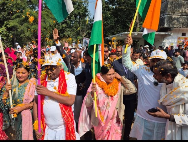 सरगुजा सांसद चिंतामणि महाराज की अगुवाई में निकाला गया पदयात्रा