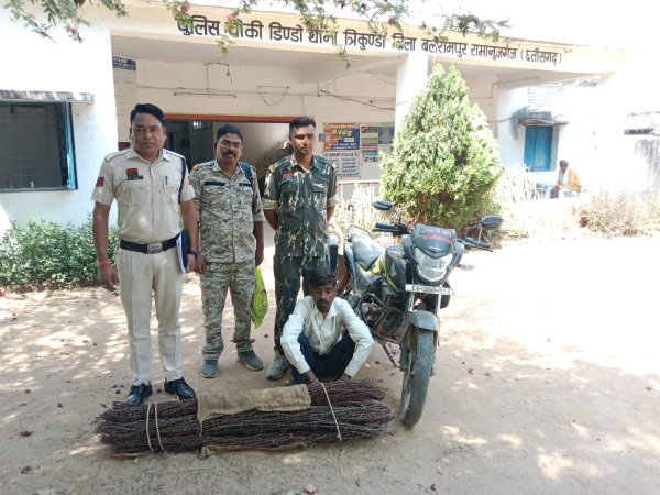 बलरामपुर : मामले का संक्षिप्त विवरण इस प्रकार है कि प्रार्थी रामकुमार यादव पिता स्वर्गीय कबीर यादव उम्र 49 वर्ष वन परिक्षेत्र आरक्षक डिंडो के द्वारा चौकी में उपस्थित होकर रिपोर्ट दर्ज कराया की दिनांक 13/03/2026 को जलवाही वन परिक्षेत्र कक्ष क्रमांक पी 835 में लगे फेंसिंग तार एवं पोल को तोड़कर उसमें लगा फेंसिंग तार को कोई चोरी कर ले गया है। चोरी गए माल करीबन 70 किलो के आसपास फेंसिंग तार का कीमत ₹6000 है। प्रार्थी कि रिपोर्ट पर चौकी डिंडो में उपरोक्त अपराध पंजीबध कर विवेचना कार्यवाही में लिया गया विवेचना दौरान चौकी डिंडो पुलिस के द्वारा संदेही विनोद कुमार मानिकपुरी पिता फुलकेश्वर मानिकपुरी उम्र 42 वर्ष ग्राम सलवाही को हिरासत में लेकर कड़ाई से पूछताछ करने पर आरोपी द्वारा चोरी करना स्वीकार किया है। आरोपी के पास से चोरी किया हुआ तार को बरामद किया गया है। आरोपी को विधिवत गिरफ्तार कर न्यायिक रिमांड पर भेजा गया है