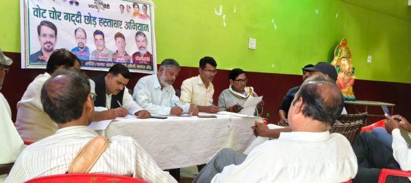 कांग्रेस द्वारा वोट चोर गद्दी छोड़ अभियान के तहत भाजपा सरकार के खिलाफ लोगों से हस्ताक्षर अभियान चला कर जुटाए जा रहे समर्थन के तहत नरैनी के चौरसिया मैरिज हॉल में ब्लॉक व नरैनी कांग्रेस कमेटी द्वारा हस्ताक्षर अभियान कैंप लगाकर सैकड़ो लोगों से हस्ताक्षर बनवाकर समर्थन जुटाया इस दौरान कांग्रेस के एआईसीसी सदस्य रमेश चंद्र कोरी ने लोगों को अभियान से जोड़ते हुए कहा कि देश में बैठी हुई भाजपा सरकार लोगों के विश्वास के साथ छल करके बैठी है जो जनता का विश्वास हो चुकी है आम आदमी महंगाई बेरोजगारी से परेशान है कांग्रेस जिला उपाध्यक्ष व नरैनी विधानसभा प्रभारी सूरज वाजपेई ने कहां कि भाजपा के कुशासन से आज देश का नौजवान किसान मजदूर आम आदमी सभी परेशान है सरकार जनता से किए गए वादे को भूल चुकी है लोकतंत्र में दिए गए अभिव्यक्ति के आजादी को छीन रहे हैं जनता के विश्वास को छल करके लूट रहे हैं जिसको जनता जान चुकी आने वाले समय में कांग्रेस की सरकार बनने वाली है कांग्रेस के ब्लॉक अध्यक्ष राम नारायण प्रजापति नगर अध्यक्ष आर के निगम जिला सचिव निसार अहमद सिद्दीकी वरिष्ठ नेता हरिकृष्ण वर्मा अबू हुरैरा ने हस्ताक्षर अभियान में सैकड़ो लोगों का समर्थन जुटा इस दौरान नरैनी क्षेत्र के अनुवाद प्रसाद विश्वकर्मा रामफल लोधी रतीराम नरेंद्र त्रिपाठी विमल कानपुर सुरेश चंद्र रामप्यारी सहित सैकड़ो लोगों ने अभियान में शामिल होकर अपना समर्थन दिया