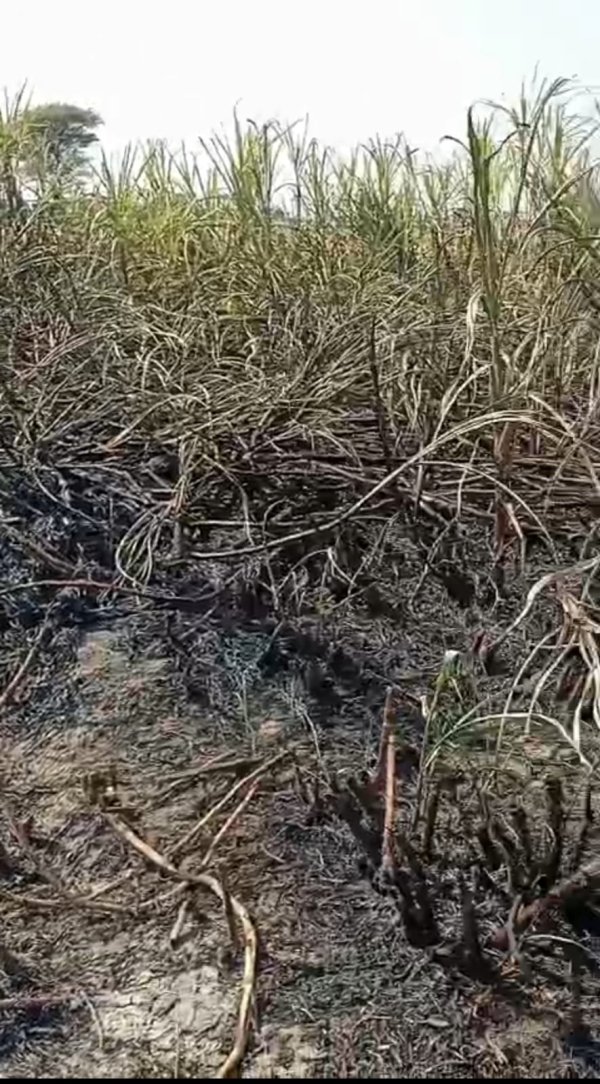 साकली गांव में गन्ने की फसल में लगी आग, समय रहते काबू