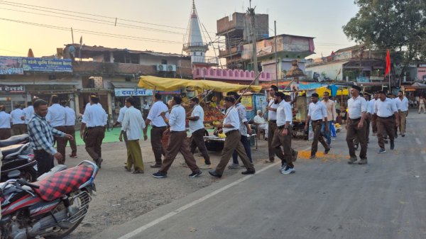 राष्ट्रीय स्वयंसेवक संघ ने निकाला पथ संचलन