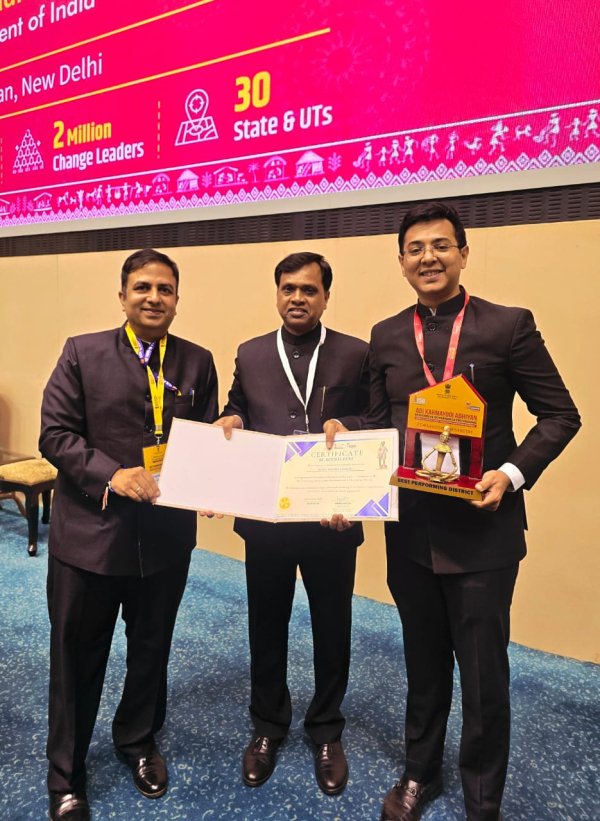 बैतूल- जनजातीय कार्य मंत्रालय भारत सरकार द्वारा संचालित "आदि कर्मयोगी" अभियान के उत्कृष्ट क्रियान्वयन के लिए बैतूल जिले को राष्ट्रीय सम्मान मिला हैं। गुरुवार को नई दिल्ली के विज्ञान भवन में आयोजित नेशनल कॉन्क्लेव में राष्ट्रपति श्रीमती द्रौपदी मुर्मू ने आदि कर्मयोगी अभियान में बेस्ट परफॉर्मिंग डिस्ट्रिक्ट के लिए बैतूल कलेक्टर श्री नरेन्द्र कुमार सूर्यवंशी को सम्मानित किया। इस दौरान मुख्य कार्यपालन अधिकारी जिला पंचायत श्री अक्षत जैन, सहायक आयुक्त जनजातीय कार्य श्री विवेक पांडे भी उपस्थित रहें।