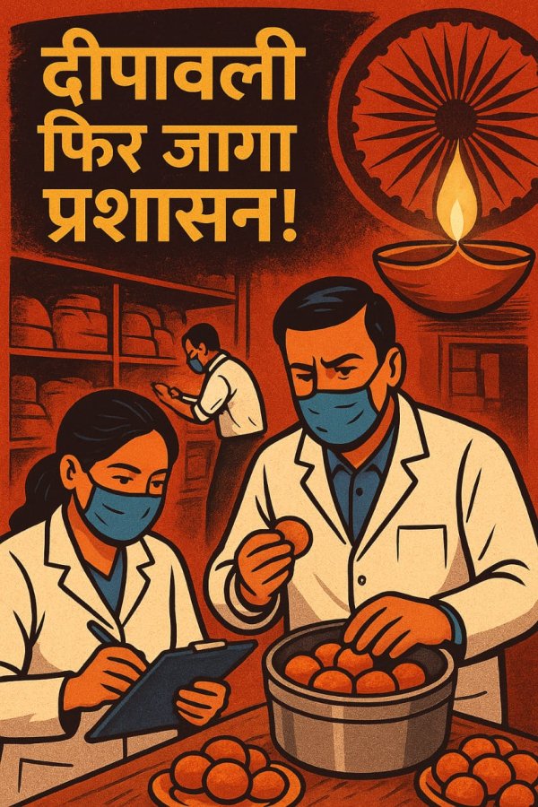 त्योहार की रोशनी में हर साल चमकता है प्रशासन, लेकिन जनता की थाली में वही पुरानी मिलावट घुली रहती है।