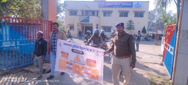 बैतूल : आमला पुलिस द्वारा नागरिकों को यातायात नियमों के प्रति जागरूक करने के उद्देश्य से शहर में मोटर साइकिल रैली का आयोजन किया गया। रैली के माध्यम से दोपहिया वाहन चालकों को हेलमेट पहनने तथा चारपहिया वाहन चालकों को सीट बेल्ट लगाने का स्पष्ट और प्रभावी संदेश दिया गया।