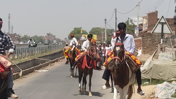पं. कृपाशंकर शुक्ल के माध्यम से कार्यक्रम कलश यात्रा निकल गई जिसमें हाथी घोड़ा पालकी के साथ सिरपर कलश नंगे पैर महिलाएं मंगल गीत गाते हुए आगे बढ़ रही थी. हाथी पर सवार मां के भक्तों पर फूलों की वर्षा हो रही थी ढोल शंख ध्वनि के साथ धर्म ध्वजा लहराते हुए कलश यात्रा सहनुमत भगवती शीतला मां के मंदिर पर पहुंची सभी देवी देवताओं के जयकारे लगाते हुए मंदिर स्थल पर पहुंचे. जहां अयोध्या से पधारे भुषणाचार्य महाराज,व रवि शास्त्री ने मां भगवती केमुख्य जजमान अजय कुमार शुक्ला CA व पत्नी पायल शुक्ला द्वारा विधि विधान से पूजन अर्चन कर मंदिर में मां विराजमान हुई कलश यात्रा प्राचीन हनुमान मंदिर जीटी रोड बिहसपुर से बघेलीपुर मालती भवन तक पैदल महिलाएं पुरुष बच्चे कलश यात्रा में शामिल हुए इस मौके पर कृपाशंकर शुक्ला जटाशंकर शिव शंकर विनोद शुक्ला अशोक कुमार प्रवीण शुक्ला गुलाब शंकर सूरज कुमार संजीत कुमार विनय शुक्ल अशोक शुक्ल सौरभ शुक्ला MBBS भूपेन्द्र शुक्ल PCS दिनेश सूरज विपिन सिद्दार्थ मौजूद रहे