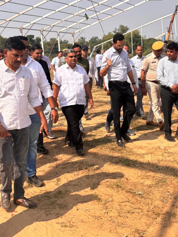 भरतपुर :  मुख्यमंत्री श्री भजनलाल शर्मा के शनिवार 18 अक्टूबर को नदबई में प्रस्तावित दौरे की तैयारियों को लेकर सहकारिता मंत्री गौतम दक ने मंगलवार को नदबई  कृषि उपज मंडी में सभा स्थल का निरीक्षण किया। उन्होंने अधिकारियों को व्यवस्थाओं को समयबद्ध और सुचारू रूप से पूर्ण करने के लिए आवश्यक दिशा-निर्देश दिए।
