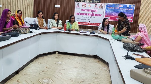 भरतपुर : पन्नाधाय सुरक्षा एवं सम्मान योजना के तहत जागृति सप्ताह 6 से 11 अप्रैल के तहत विभिन्न कार्यक्रम आयोजित किये जायेंगे। कार्यक्रम के तहत महिला अधिकारिता द्वारा सोमवार को पंचायत समिति सेवर के सभागार में बाल विवाह प्रतिषेध अधिनियम 2006 एवं बाल विवाह मुक्त भारत अभियान की जानकारी किशोरियांे एवं महिलाओं को प्रदान की गई। कार्यक्रम का संचालन मनीषा कुमारी के द्वारा किया गया।