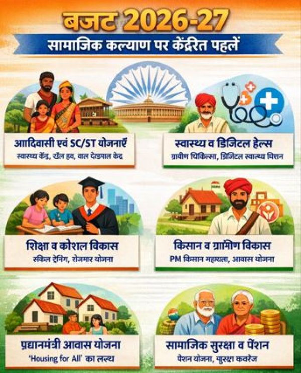 बजट 2026‑27 का सामाजिक कल्याण पर फोकस स्पष्ट है। इसका उद्देश्य सबको साथ लेकर चलना, वंचित वर्गों का सशक्तिकरण, और समाज में समान अवसरों का निर्माण करना है।