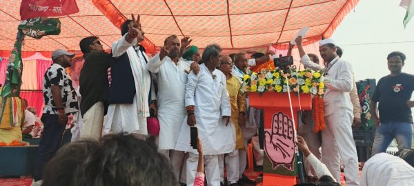 बक्सर : विधानसभा के कांग्रेस महागठबंधन प्रत्याशी संजय कुमार तिवारी उर्फ मुन्ना तिवारी एवं राजपुर विधानसभा विश्वनाथ राम का नामांकन आज बड़े ही धूमधाम से हुआ चुनाव आयोग के निर्देशानुसार अधिकृत लोगों द्वारा अनुमंडल कार्यालय पहुंचकर सभ्य और सभ्यता के अनुरूप नामांकन प्रक्रिया के साथ जिला कांग्रेस कमेिटी अध्यक्ष डॉ मनोज पांडे के उपस्थिति में किया गया । नामांकन प्रक्रिया करने के बाद संजय तिवारी ने बक्सर के ऐतिहासिक आईटीआई फील्ड मैदान में विशाल जनसभा किया जनसभा की अध्यक्षता राष्ट्रीय जनता दल के जिला अध्यक्ष शेषनाथ यादव ने किया ll मंच का संचालन बक्सर जिला कांग्रेस कमेिटी के अध्यक्ष डॉ मनोज पांडे ने किया ll सभा का संचालन करते हुए डॉ पांडे ने कहा कि जैसे हम सभी 10 वर्षों से बक्सर माटी के भगवान रूपी जनता का दिन रात सेवा करने का काम करते हैं इस विधानसभा में भी उससे भी बढ़-चढ़कर काम करने का संकल्प लेते हैं डॉ पांडे ने स्पष्ट रूप से कहा कि महागठबंधन सरकार बनाएगी और मुन्ना तिवारी द्वारा अधूरे कार्यों को पूरा करने का काम किया जाएगा ll