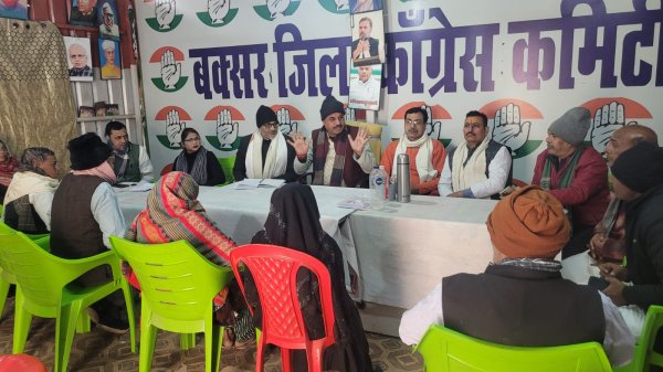 बक्सर : बक्सर जिला कांग्रेस कमेटी कार्यालय में कांग्रेस संगठन को जमीनी स्तर पर अधिक सशक्त, अनुशासित एवं जनसंघर्ष से जुड़ा बनाने के उद्देश्य से एक अत्यंत आवश्यक संगठनात्मक बैठक आयोजित की गई। बैठक की अध्यक्षता जिला कांग्रेस कमेटी के अध्यक्ष डॉ. मनोज पांडे ने की।