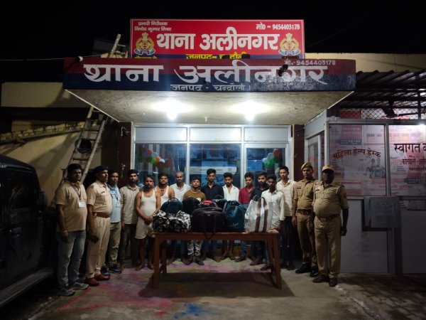 चंदौली - आदित्य लांग्हेपुलिस अधीक्षक चन्दौली द्वारा शराब तस्करी पर प्रभावी अंकुश लगाये जाने व अवैध शराब की तस्करी में संलिप्त अभियुक्तों की गिरफ्तारी हेतु दिये गये निर्देशों के अनुपालन के क्रम में अपर पुलिस अधीक्षक सदर (IPS) अनन्त चन्द्रशेखर व कृष्ण मुरारी शर्मा, क्षेत्राधिकारी PDDU नगर के पर्यवेक्षण* में अनिल कुमार पाण्डेय, प्रभारी निरीक्षक अलीनगर की टीम द्वारा अवैध अंग्रेजी बरामद करते हुए 11 अभियुक्तों को गिरफ्तार किया गया है। थाना अलीनगर पुलिस टीम व RPF द्वारा प्राप्त इनपुट के आधार पर लोको कालोनी स्थित रेलवे,ओवरब्रीज के पास से चेकिंग के दौरान समय करीब 21.30 बजे 50 पीस 8PM अंग्रेजी शराब (प्रत्येक की मात्रा 180 ML) , 20 रायल स्टेग अंग्रेजी शराब)(प्रत्येक की मात्रा 750 ML) 04 बलैन्डर प्राइड अंग्रेजी शराब (प्रत्येक की मात्रा 750 ML) ,30 आफटर डार्क प्लास्टिक के टेट्रा पैक अंग्रेजी शराब (प्रत्येक की मात्रा 180 ML) ,82 MOUNTAIN OAK प्लास्टिक के टेट्रा पैक अंग्रेजी शराब (प्रत्येक की मात्रा 180 ML) , 02 सिगनेचर अंग्रेजी शराब (प्रत्येक की मात्रा 750 ML) 19 सिग्नेचर प्लास्टिक के टेट्रा पैक अंग्रेजी शराब (प्रत्येक की मात्रा 180 ML), 10 आफिसर च्वाईस टेट्रा पैक अंग्रेजी शराब (प्रत्येक की मात्रा 180 ML) व 24 किंग फिसर बियर अंग्रेजी शराब (प्रत्येक की मात्रा 500 ML) कुल 65.88 लीटर नाजायज अंग्रेजी शराब बरामद करते हुए 11 नफर अभियुक्तगण को मौके से गिरफ्तार कर लिया गया। गिरफ्तार अभियुक्तगण से उनका नाम पता पूछने पर अपना नाम 1. सोनू कुमार पुत्र कृष्णा राय निवासी वार्ड नं0 06 रामपुर श्यामचन्द्र थाना राधोपुर जिला वैशाली (बिहार) 2. सुधीर कुमार पुत्र डब्लू चौहान निवासी जियापुर वार्ड नं0 11 थाना वारिसलीगंज थाना नवादा (बिहार) 3. सोनू कुमार पुत्र पंकज कुमार निवासी सुदौली बिगहा वार्ड नं0 09 थाना एकंगरसराय जिला नालन्दा (बिहार) 4. कुन्दन कुमार पुत्र वकील राय निवासी कच्चीधार मदरसा गली थाना चौक जिला पटना (बिहार) 5. रौशन कुमार पुत्र महेश राय निवासी रामपुर श्यामचन्द्र निवासी राघोपुर जिला बैशाली (बिहार) 6. निरंजन कुमार पुत्र दिनेश यादव निवासी सुरौधा वार्ड नं0 08 थाना बाराचट्टी जिला गया (बिहार) 7. अभिषेक कुमार पुत्र नीरज कुमार निवासी अभयपुर पीरीबस्ती थाना पीरीबाजार जिला लख्खीसराय (बिहार) 8. उमेश राय पुत्र चन्द्रदीप राय निवासी सुकुमारपुर थाना राधोपुर जिला बैशाली (बिहार) 9. रजनीश कुमार पुत्र अशोक कुमार निवासी सदौली बिगहा वार्ड नं0 09 थाना एकंगरसराय जिला नालन्दा (बिहार) 10. नीरज कुमार पुत्र स्व० अरविन्द प्रसाद निवासी मीठापुर वार्ड नं0 19 थाना जक्कनपुर जिला पटना (बिहार) 11. सतेन्द्र कुमार पुत्र लुरेन्द्र प्रसाद निवासी बेलाव थाना बरबीघा जिला शेखपुर (बिहार), वर्तमान पता - मनं0 07 खुशीराम कालोनी विकास बिहा