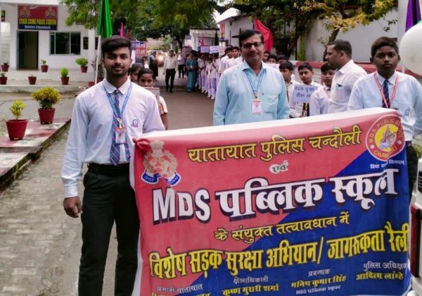 चंदौली - जिले में सड़क सुरक्षा और यातायात नियमों के प्रति जनमानस को जागरूक करने के उद्देश्य से, 01 नवंबर, 2025 को पुलिस लाइन चंदौली में यातायात जागरूकता माह-2025 का भव्य शुभारंभ किया गया। इस कार्यक्रम में एमडीएस पब्लिक स्कूल के बच्चों ने जागरूकता रैली के माध्यम से यातायात नियमों के प्रति लोगों को जागरूक करने का कार्य किया साथ ही बच्चों ने अपने अभिभावकों को भी यातायात नियमों के प्रति जागरूक करने का संकल्प लिया, उक्त अवसर पर पुलिस अधीक्षक श्री आदित्य लांग्हे ने हरी झंडी दिखाकर रैली को रवाना किया और इस पूरे माह चलने वाले जागरूकता अभियान का उद्घाटन किया।