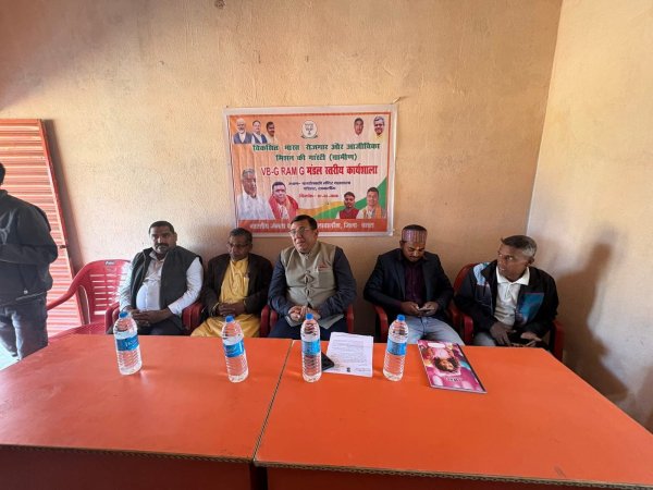 लावालौंग : बीवी जी राम जी ग्रामीण योजना का आज लावालौंग बजरंग बली मंदिर यज्ञशाला परिसर में भाजपा मंडल अध्यक्ष खगेश्वर साहू की अध्यक्षता में किया गया कार्यशाला का संचालन मंडल महामंत्री बिहारी भारती ने किया कार्यक्रम में मुख्य अतिथि एवं वक्ता के रूप में सिमरिया विधानसभा के विधायक कुमार उज्ज्वल दास जी उपस्थित होकर कार्यक्रम को संबोधित किए विधायक कुमार उज्ज्वल दास ने बताया की पहले मनरेगा में 100 दिन का रोजगार दिया जाता था जिसे अब 125 दिन का रोजगार दिया जाएगा एवं कच्चे कार्य के साथ अब पक्के कार्य भी किए जाएंगे और इस योजना में ग्राम सभा की भूमिका अहम होगी ग्राम सभा के जरिए जो भी कार्य स्वीकृति होगी वो कार्य किए जाएंगे और यह सभी कार्य ग्राम के विकास के लिए वरदान होंगे कांग्रेस पार्टी को योजना से नहीं भगवान राम के नाम से परेशानी है और उनके बिचौलिए अब भ्रष्टाचार नहीं कर पाएंगे ।
