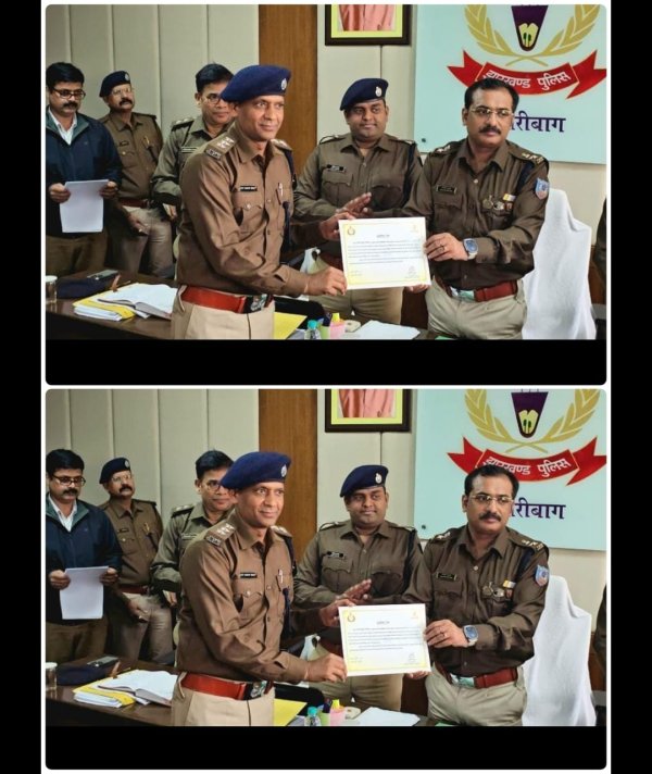 इस सराहनीय उपलब्धि को देखते हुए हजारीबाग पुलिस अधीक्षक महोदय ने एसडीपीओ अजीत कुमार विमल, थाना प्रभारी विनोद कुमार, अंचल निरीक्षक चंद्रशेखर कुमार सहित पूरे सहयोगी दस्ता को प्रशस्ति पत्र प्रदान कर सम्मानित किया। यह सम्मान न केवल उनकी कर्तव्यनिष्ठा का प्रतीक है, बल्कि भविष्य में भी अपराध नियंत्रण एवं कानून-व्यवस्था कायम रखने के लिए प्रोत्साहन का कार्य करेगा।