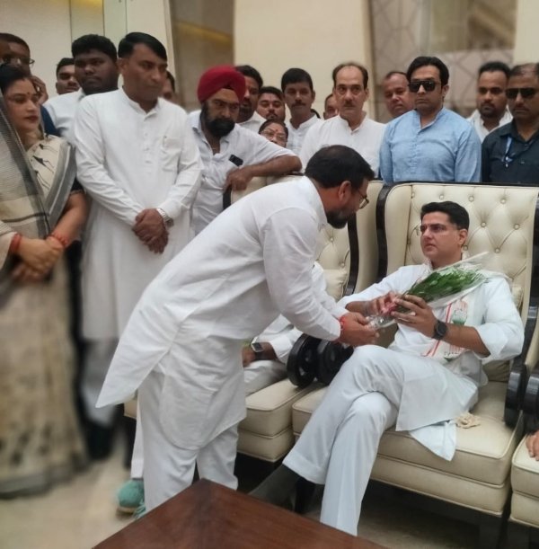 राजनांदगांव में सचिन पायलट से विष्णु लोधी ने की आत्मीय भेंट