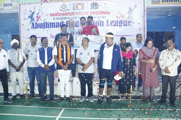 विदित हो कि अबूझमाड़ खेल उत्सव 2025 के अंतर्गत अबूझमाड़ बैडमिंटन लीग 2025 – सीज़न 2 का आयोजन 18-20 सितंबर 2025 को जिला जिला मुख्यालय के ऑफिसर्स क्लब में हुआ। जिसमें राज्यभर से ओपन केटेगरी में 45 टीम और वेटेरन्स केटेगरी में 33 कुल 78 टीम ने अपने प्रतिभा का किया सर्वोच्च प्रदर्शन। दिनाँक 20-09-2025 को ओपन केटेगरी में जसमीत सिंह वेंकट गौरव बनाम आयुष मखीजा सुजय तम्बोली और वेटेरन्स केटेगरी में प्रकाश मूर्ति सुदेश तिवारी बनाम दलेश्वर बंजारे हेमन्त भगत की जोड़ी के मध्य बेहद रोमांचक फाइनल खेले गए।