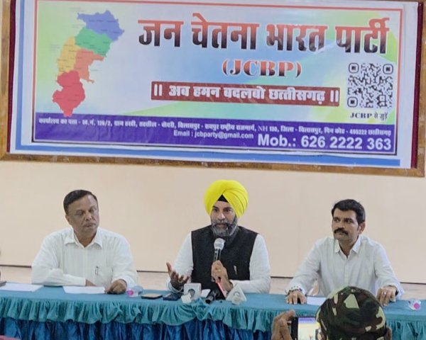 बिलासपुर : जन चेतना भारत पार्टी छत्तीसगढ़ के संस्थापक सदस्य जसबीर सिंह चावला (बिलासपुर), जयंत गायधने (रायपुर)और अभिषेक बाफना(महासमुंद) ने प्रेस वार्ता कर पत्रकारों के समक्ष अपनी नई पार्टी का उपदेश व आने वाले समय में जो पार्टी ने लक्ष्य रखा है उसकी विस्तार से जानकारी दी।जसबीर सिंह चावला ने कहा कि छत्तीसगढ़ बनने के 25 वर्ष बाद भी पूरे प्रदेश की जनता हर क्षेत्र में अभाव ग्रस्त है और सपनों के सौदागर सरकारों की बातों और कामों से अब जनता ठगा सा महसूस कर रही है।