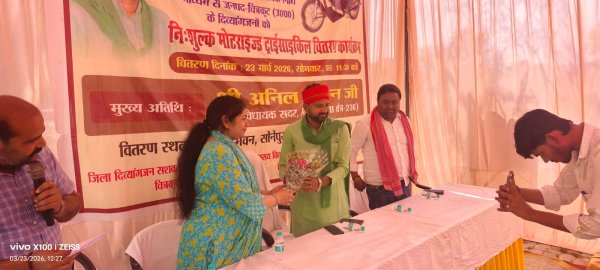 चित्रकूट : विकास भवन परिसर में दिव्यांगजन सशक्तीकरण विभाग एवं श्री अनिल प्रधान माननीय विधायक सदर की विधायक निधि एवं एडिप योजना के अन्तर्गत जनपद के 20 ऐसे दिव्यांगजनों को मोटराइज्ड ट्राईसाइकिल वितरित की गयी है जो कि 80 प्रतिशत से 100 प्रतिशत दिव्यांग है, कार्यक्रम के मुख्य अतिथि मा० विधायक सदर श्री अनिल प्रधान जी के साथ श्री सुरेन्द्र यादव विधानसमा चित्रकूट एवं श्रीमती प्रियंका यादव जिला दिव्यांगजन सशक्तीकरण अधिकारी चित्रकूट के कर कमलों से दिव्यांगजनों को 20 मोटराइज्ड ट्राईसाइकिल वित्तरित की गयी है। जिला दिव्यांगजन सशक्तीकरण अधिकारी श्रीमती प्रियंका यादव जी के द्वारा कार्यकम में उपस्थित दिव्यांगजनों को विभाग द्वारा संचालित योजनाओं की सम्पूर्ण जानकारी उपलब्ध करायी गयी एवं मा० विधायक सदर श्री अनिल प्रधान जी के द्वारा कार्यक्रम में उपस्थित समस्त दिव्यांगजनों का प्रोत्साहन किया गया अथवा अगले वित्तीय वर्ष-2026-27 में अधिक से अधिक दिव्यांगजनों को विधायक निधि से मोटराइज्ड ट्राईसाइकिल वितरित किये जाने हेतु आश्वासन दिया गया।