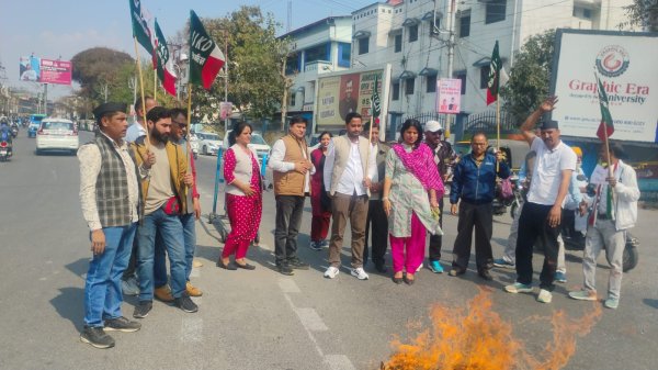 देहरादून : आज उत्तराखण्ड की अस्थाई राजधानी देहरादून स्थित द्रोण चौक पर उत्तराखण्ड क्रान्ति दल के महानगर अध्यक्ष प्रबीन रमोला के नेतृत्व में खानपुर के पूर्व विधायक प्रणव सिंह चैंपियन एवं भाजपा सरकार का पुतला दहन किया गया। इस अवसर पर पदाधिकारियों एवं कार्यकर्ताओं को संबोधित करते हुए महानगर अध्यक्ष प्रबीन रमोला ने कहा कि राज्य में कानून व्यवस्था लगातार गिरती जा रही है। विशेष रूप से पूर्व विधायक द्वारा एक न्यूज़ चैनल के एंकर एवं अन्य कर्मचारियों को फोन पर गोली मारने तथा ट्रक से कुचलने जैसी गंभीर धमकियाँ देना अत्यंत निंदनीय है और यह लोकतंत्र पर सीधा हमला है। उन्होंने कहा कि पत्रकार समाज का चौथा स्तंभ हैं और उन पर इस प्रकार का भय और दबाव बनाना लोकतांत्रिक मूल्यों के खिलाफ है। यदि सत्ता से जुड़े या पूर्व जनप्रतिनिधि ही कानून को हाथ में लेने का प्रयास करेंगे तो आम जनता की सुरक्षा कैसे सुनिश्चित होगी? ऐसे कृत्यों पर सख्त कार्रवाई होनी चाहिए ताकि भविष्य में कोई भी जनप्रतिनिधि इस प्रकार की हरकत करने का साहस न कर सके।