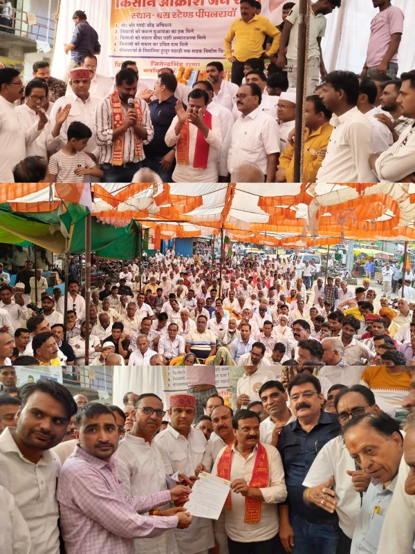 देवास : पीपलरावां बस स्टैंड पर कांग्रेस पार्टी द्वारा किसान आक्रोश जनसभा का किया गया आयोजन । पूर्व मंत्री सज्जन सिंह वर्मा,जिलाध्यक्ष मनीष चौधरी सहित कांग्रेस नेताओं ने जनसभा को किया संबोधित पीपलरावां - नगर के बस स्टैंड पर बुधवार को कांग्रेस पार्टी द्वारा किसान आक्रोश जनसभा का आयोजन किया गया। सर्वप्रथम डॉ अम्बेडकर तथा लाल बहादुर शास्त्री के चित्र पर माल्यार्पण कर जनसभा की शुरुआत हुई। जनसभा को कांग्रेस के ग्रामीण जिलाध्यक्ष मनीष चौधरी ने संबोधित करते हुए कहा कि सरकार ने सोयाबीन का 5329 समर्थन मूल्य लागू किया है , किंतु आज किसानों का सोयाबीन मंडीयों में 3500 , 3600 , 3700 के भाव बिक रहा है। आठ साल पहले ये लोग अर्थव्यवस्था सुधारने के लिए गब्बर सिंह टेक्स जीएसटी लेकर आए थे। आठ साल मे इन्होंने 33 लाख करोड़ रुपए की जनता से लूट की और आज ये जीएसटी कम करके उत्सव मना रहे हैं। जनसभा को किसान कांग्रेस जिलाध्यक्ष विश्वजीत सिंह चौहान , प्रदेश उपाध्यक्ष मनोज राजानी , जिपं सदस्य महेंद्र सिंह यशोना , विधानसभा प्रभारी हुकुम सिंह पाटीदार ने भी संबोधित किया। पूर्व मंत्री सज्जन सिंह वर्मा ने संबोधित करते हुए कहा कि आज प्रदेश के मुख्यमंत्री डॉ मोहन यादव के गृह जिले में किसान आत्महत्या कर रहा है। इससे आप अंदाजा लगा लो प्रदेश के किसानों का कितना बुरा हाल होगा। आज किसानों का सोयाबीन 3500 के भाव बिक रहा है। हमने मुख्यमंत्री से पत्र लिखकर मांग की कि हमने कमलनाथ सरकार के समय मार्केटिंग सोसायटी के माध्यम से समर्थन मूल्य पर सोयाबीन खरीदे थे , आप भी किसानों को उचित मूल्य दो किंतु उन्होंने किसानों को भावांतर दे दिया। सोनकच्छ विधानसभा के किसानों के खाते से करीब 12 करोड़ की राशि फसल बीमा के नाम पर काट ली गई किंतु आज तक फसल बीमा का एक रूपया भी नहीं मिला। राज्यपाल के नाम ज्ञापन सौंपा गया। नायब तहसीलदार लखनसिंह सोनानिया को कांग्रेसियों ने