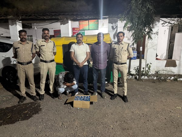 एक ऑटो से एक पेटी देशी मदिरा के परिवहन करते हुए एक व्यक्ति को गिरफ़्तार किया गया
