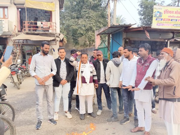 देवास : पीपलरावाँ। भागीरथपुरा में प्रशासनिक लापरवाही और भ्रष्टाचार के चलते 15 निर्दोष नागरिकों की हुई दर्दनाक मौत के विरोध में शहर कांग्रेस एवं युवक कांग्रेस साथियों के साथ बस स्टेंड पर मंत्री कैलाश विजय वर्गीय का पुतला फूंक कर जोरदार प्रदर्शन किया गया। इस जनसंहार के लिए जिम्मेदार लोगों पर तत्काल मामला दर्ज करने की पुरज़ोर मांग की गई। जब तक मृतकों के परिजनों को पूर्ण न्याय नहीं मिलता और इस जघन्य कृत्य के लिए जिम्मेदार भाजपा नेताओं सहित दोषी अधिकारियों पर गैर-इरादतन हत्या का मामला दर्ज नहीं किया जाता, तब तक कांग्रेस का यह संघर्ष सड़क से लेकर सदन तक निरंतर जारी रहेगा। इसमें प्रमुख रूप से ब्लॉक कांग्रेस अध्यक्ष मनोज चौहान, शहर कांग्रेस अध्यक्ष शाहिद मंसूरी, युवक कांग्रेस विधानसभा अध्यक्ष वीरेंद्र सिंह सेंधव, युवक कांग्रेस महासचिव कृष्णा ठाकुर, पार्षद बबलू हाडा, पूर्व पार्षद नौशाद मंसूरी, छगन लाल गुप्ता, सोनू पठान, राजकुमार खत्री, बाबू बड़कनिया, लोकेंद्र सेंधव अरशद पठान आदि कांग्रेस कार्यकर्ता उपस्थित रहे।