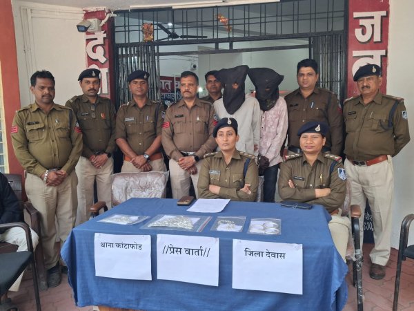 देवास : कांटाफोड़ पुलिस ने अपनी मुस्तैदी और तकनीकी दक्षता का परिचय देते हुए गोविंद नगर (कांटाफोड़) स्थित प्रसिद्ध गणेश मंदिर में हुई चोरी का पर्दाफाश कर दिया है। 'ऑपरेशन त्रिनेत्रम' के तहत कार्रवाई करते हुए पुलिस ने दो आरोपियों को गिरफ्तार कर उनके पास से चोरी गया शत-प्रतिशत माल (मश्रुका) बरामद कर लिया है।