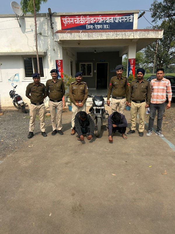 देवास : चौबारा धीरा पुलिस अधीक्षक पुनीत गेहलोद द्वारा जिले में चोरी और नकबजनी की घटनाओं पर अंकुश लगाने के लिए चलाए जा रहे अभियान के तहत पीपलरावां पुलिस को बड़ी सफलता मिली है। पुलिस ने दो शातिर चोरों को गिरफ्तार कर उनके कब्जे से चोरी की मोटरसाइकिल बरामद की है। इस पूरी कार्रवाई में 'ऑपरेशन त्रिनेत्रम' के तहत लगे सीसीटीवी कैमरों ने आरोपियों को बेनकाब करने में अहम भूमिका निभाई। क्या था मामला? शनिवार को एक फरियादी ने चौबाराधीरा चौकी पर रिपोर्ट दर्ज कराई थी कि इकलेरा माता मंदिर की पार्किंग से उसकी मोटरसाइकिल (क्रमांक MP41NG 5006) चोरी हो गई है। पुलिस ने धारा 303 (2) BNS के तहत मामला दर्ज कर जांच शुरू की। सीसीटीवी फुटेज से खुले राज एडिशनल एसपी जयवीर सिंह भदौरिया और एसडीओपी सोनकच्छ दीपा माण्डवे के मार्गदर्शन में थाना प्रभारी सुबोध कुमार गौतम और चौकी प्रभारी अरुण पिपल्दे की टीम ने जांच तेज की। घटनास्थल के आसपास लगे सीसीटीवी कैमरों को खंगालने पर आरोपी चोरी कर भागते हुए कैद मिले। तकनीकी साक्ष्यों और मुखबिर की सूचना पर पुलिस ने घेराबंदी कर दो आरोपियों को दबोच लिया।