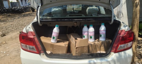 बरामदगी: तलाशी के दौरान कार से 50 लीटर नकली कीटनाशक बरामद किया गया।