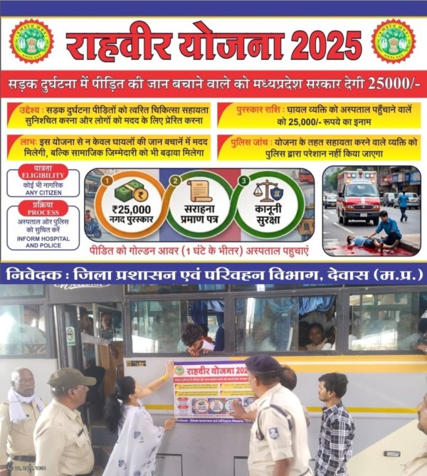 सड़क दुर्घटना में घायलों की मदद करने पर मिलेंगे 25 हजार: देवास में ‘राहवीर योजना’ का शंखनाद