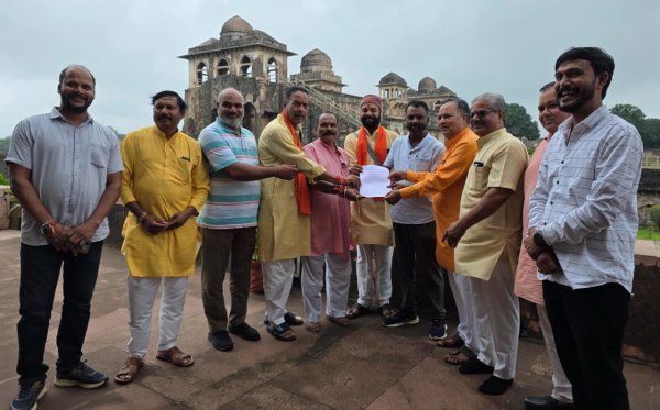 मांडव : भोज उत्सव समिति ने भारतीय पुरातत्व सर्वेक्षण, मांडव कार्यालय में ज्ञापन सौंपते हुए आगामी 23 जनवरी 2026 (शुक्रवार), बसंत पंचमी पर भोजशाला परिसर में माँ सरस्वती जन्मोत्सव निर्विघ्न सम्पन्न कराने की माँग की है।
