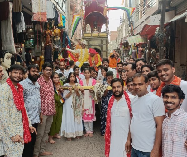 दोपहर में भगवान महावीर जी की रथ यात्रा पूरे नगर में निकाली गई। श्रद्धालुओं ने जगह-जगह भगवान महावीर की आरती उतारते हुए पुष्प वर्षा कर स्वागत किया। पूरा नगर भक्ति और उल्लास के रंग में रंगा नजर आया। रथ यात्रा का समापन दिव्य आरती के साथ हुआ। वहीं शाम को मंदिर परिसर में माता के सोलह स्वप्न नाटक का मंचन एवं सांस्कृतिक कार्यक्रमों का आयोजन किया गया, जिसे श्रद्धालुओं ने भाव-विभोर होकर देखा। इस अवसर पर अध्यक्ष नितिन जैन, वासु जैन, सेठी जैन, विपिन जैन, विनय जैन, प्रियांशु जैन, प्रिंस जैन, डैनी जैन, तरुण जैन, दीपक जैन, राकेश जैन, आशुतोष जैन, मनोज जैन, विपनेश जैन, लाल जी जैन, मुकेश जैन, दिनेश जैन, अशोक जैन सहित जैन समाज के अनेक गणमान्य लोग मौजूद रहे। पूरे आयोजन ने नगर में धार्मिक आस्था, एकता और उत्साह का सुंदर संदेश दिया।