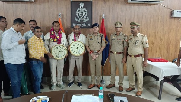 इटावा - जनपद इटावा पुलिस सेवा से आज दो वरिष्ठ मुख्य आरक्षी— श्री राकेश चन्द्र एवं श्री सुनील कुमार सचान अधिवर्षता आयु पूर्ण कर सेवानिवृत्त हो गए। इस अवसर पर रिजर्व पुलिस लाइन स्थित सभागार कक्ष में भावभीनी विदाई समारोह आयोजित किया गया। समारोह में वरिष्ठ पुलिस अधीक्षक इटावा श्री बृजेश कुमार श्रीवास्तव के निर्देशन में अपर पुलिस अधीक्षक अपराध श्री सुबोध गौतम ने दोनों मुख्य आरक्षियों को अंगवस्त्र ओढ़ाकर, माल्यार्पण कर तथा प्रशस्ति पत्र एवं उपहार भेंट कर सम्मानित किया। एएसपी श्री गौतम ने अपने उद्बोधन में कहा कि पुलिस सेवा से सेवानिवृत्ति कोई अंत नहीं बल्कि एक नए जीवन की शुरुआत है। उन्होंने दोनों पुलिसकर्मियों के योगदान की सराहना करते हुए उनके सुखमय व स्वस्थ जीवन की शुभकामनाएँ दीं। कार्यक्रम में अन्य पुलिस अधिकारी एवं कर्मचारीगण भी उपस्थित रहे और सभी ने भावभीने शब्दों में अपने सहयोगियों को विदाई दी।