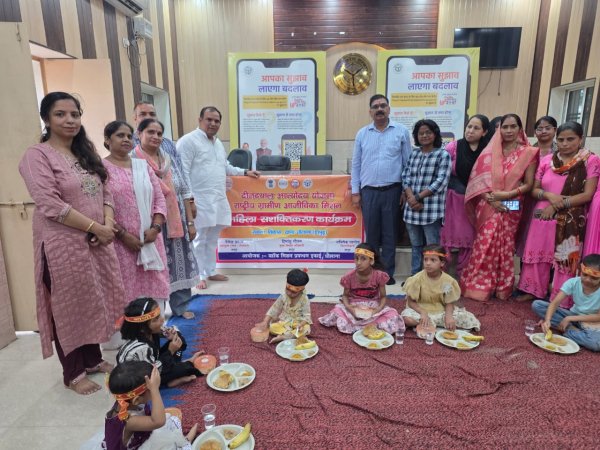 धौलाना - अष्टमी के शुभ अवसर पर विकासखंड सभागार धौलाना में मिशन शक्ति कार्यक्रम के अंतर्गत भव्य आयोजन किया गया। इस अवसर पर ब्लॉक प्रमुख निशांत शिशोदिया, खंड विकास अधिकारी राम कुमार शर्मा और सीडीपीओ बबीता ने श्रद्धा और परंपरा के साथ कन्याओं का विधिवत पूजन किया। कन्या पूजन के बाद उन्हें भोजन प्रसाद कराया गया। स्नेह स्वरूप प्रत्येक कन्या को एक टिफिन बॉक्स और 100 रुपए विदाई उपहार के रूप में भेंट किए गए। कार्यक्रम में उपस्थित जनप्रतिनिधियों और अधिकारियों ने कहा कि नवरात्रि पर कन्या पूजन केवल धार्मिक दृष्टि से ही नहीं,बल्कि "बेटी बचाओ-बेटी पढ़ाओ" और नारियों के सम्मान का संदेश भी देता है। मिशन शक्ति अभियान का उद्देश्य महिलाओं और कन्याओं को सशक्त बनाना तथा उनके प्रति समाज की सकारात्मक सोच को और मज़बूत करना है। पूरे आयोजन में श्रद्धा और उत्साह का माहौल देखने को मिला और उपस्थित जनसमूह ने कन्याओं का अभिनंदन करते हुए उनके उज्ज्वल भविष्य की कामना की।