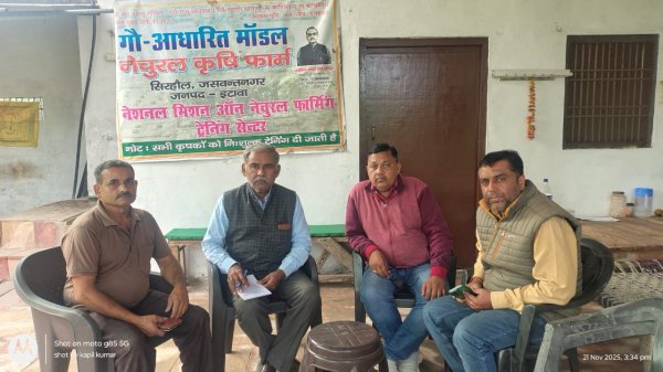 इटावा - प्राकृतिक खेती और गौ सेवा को बढ़ावा देने की दिशा में एक महत्वपूर्ण कदम उठाते हुए,जसवंत नगर विकासखंड के वीडीओ (BDO) श्री उदयवीर दुबे ने अपने दल के साथ सिरहौल स्थित गौ आधारित नेचुरल कृषि फार्म का सघन भ्रमण किया। उनके साथ एडीओ कृषि श्री बलवीर सिंह और एडीओ आजीविका मिशन श्री महेश कुमार सिंह भी मौजूद रहे। भ्रमण के दौरान,अधिकारियों ने नेचुरल कृषि फार्म को और अधिक प्रभावी ढंग से विकसित करने के लिए मूल्यवान दिशा-निर्देश दिए। उन्होंने फार्म पर मास्टर ट्रेनर श्री अरविंद प्रताप सिंह परिहार (एन एम एन एफ) द्वारा प्राकृतिक तकनीकों का उपयोग करके किए गए उत्कृष्ट कार्यों की भूरी-भूरी सराहना की। भ्रमण के उपरांत, BDO श्री उदयवीर दुबे ने अपने विचार व्यक्त करते हुए कहा:"यदि सभी किसान भाई-बहन नेचुरल फार्मिंग एवं गौ सेवा को अपना लें, तो हमारे सभी देशवासियों को स्वस्थ एवं विष-मुक्त भोजन मिलने की और किसानों की आर्थिक स्थिति में सुधार होने की काफी संभावनाएं बढ़ सकती हैं।" अधिकारियों ने इस मॉडल फार्म को अन्य किसानों के लिए प्रेरणा स्रोत बताया। मास्टर ट्रेनर अरविंद प्रताप सिंह परिहार ने सभी अधिकारियों का आभार व्यक्त किया और प्राकृतिक खेती के प्रसार के लिए अपने संकल्प को दोहराया।